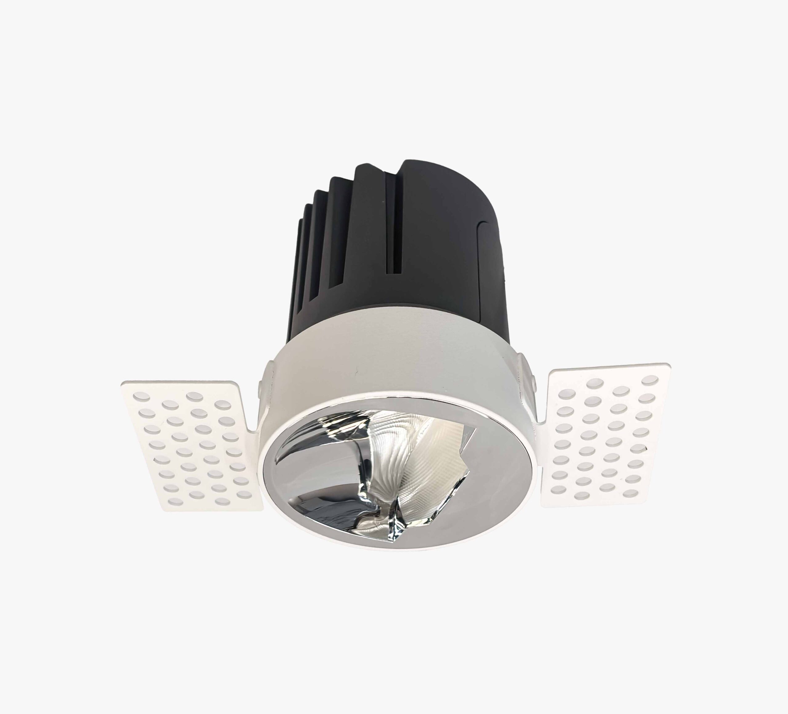 Asymmetric downlighter for wall washing made of die cast aluminium and fitted lens giving uniform lighting . Ideal for lighting up walls with wall paper or wooden cladding or marble cladding etc
