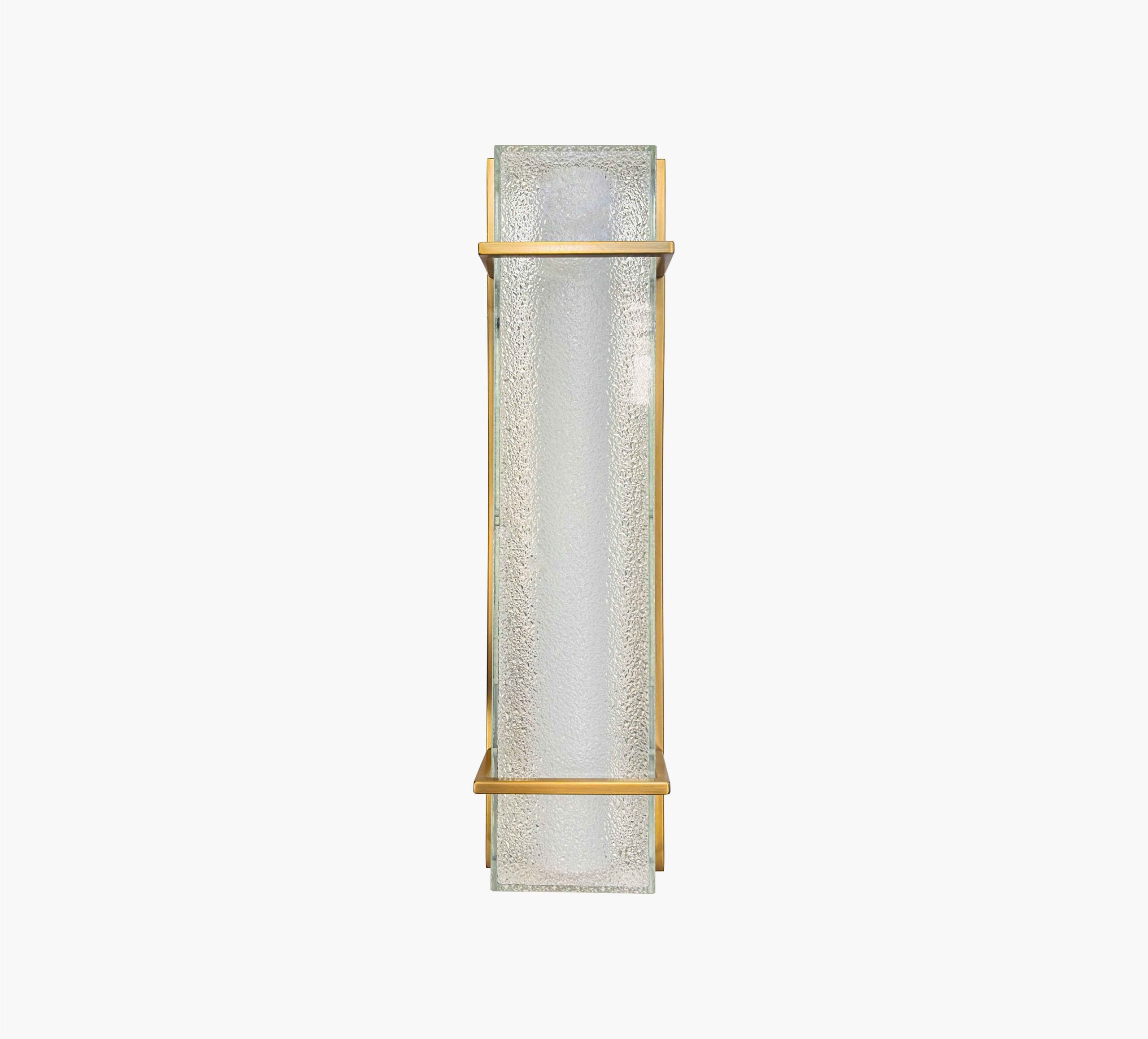 Luemin outdoor wall light with IP65 rating, >90 CRI, made of stainless steel and tempered glass, featuring an elegant brass finish.